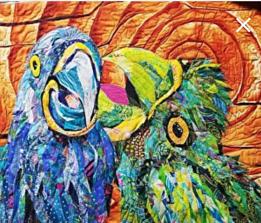 .We’ll use bits and pieces of printed fabrics to “paint” an animal portrait. Choose from one of my many animal or bird designs or from a pattern I create for you from a photo you provide in advance. We’ll chop up our fabrics, divide them into values, and fill in the value marked pattern sections with corresponding value pieces of fabric. Add a bit of tulle, and some simple quilting and you will have created your unique masterpiece. If you prefer to finish your piece without sewing, that’s okay too! No-sew finishing options are also taught. The results are wild, whimsical, and totally believable!